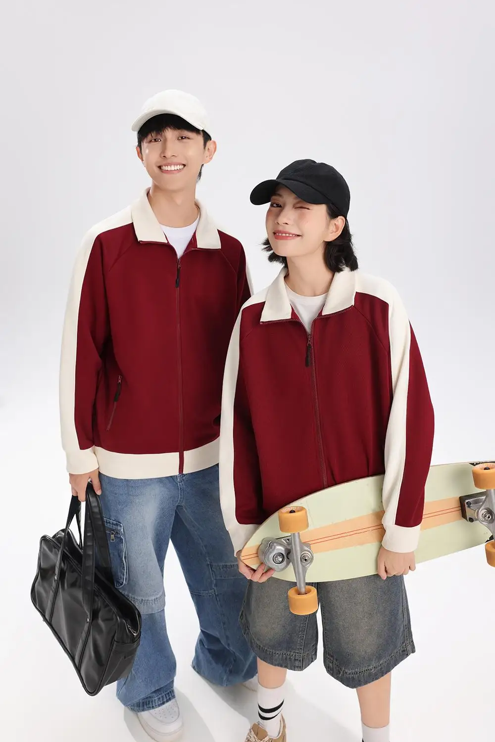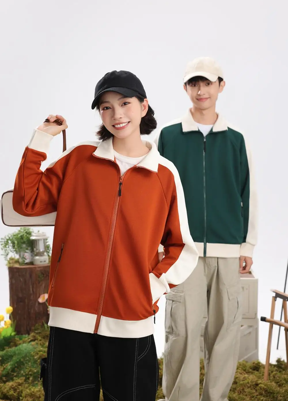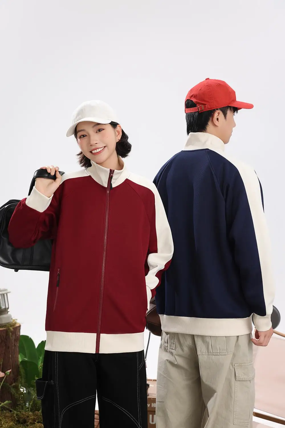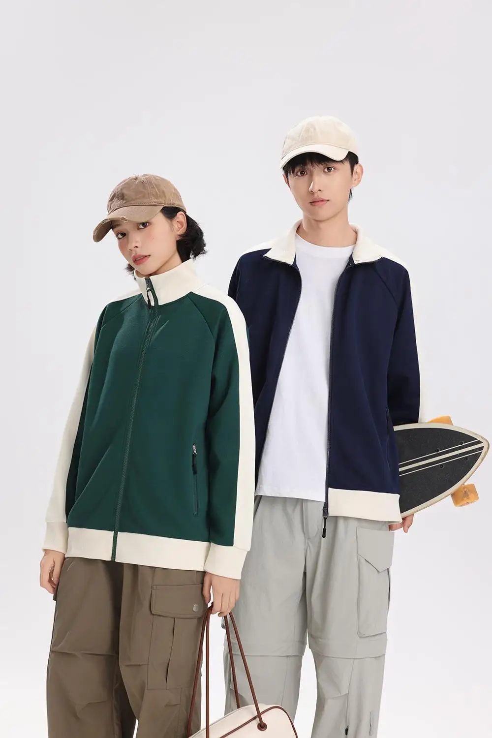 Long-sleeved Zipper Jacket, Color-blocked Warm Sweatshirt, Casual Baseball Jacket, Outdoor Wear, Customizable Logo