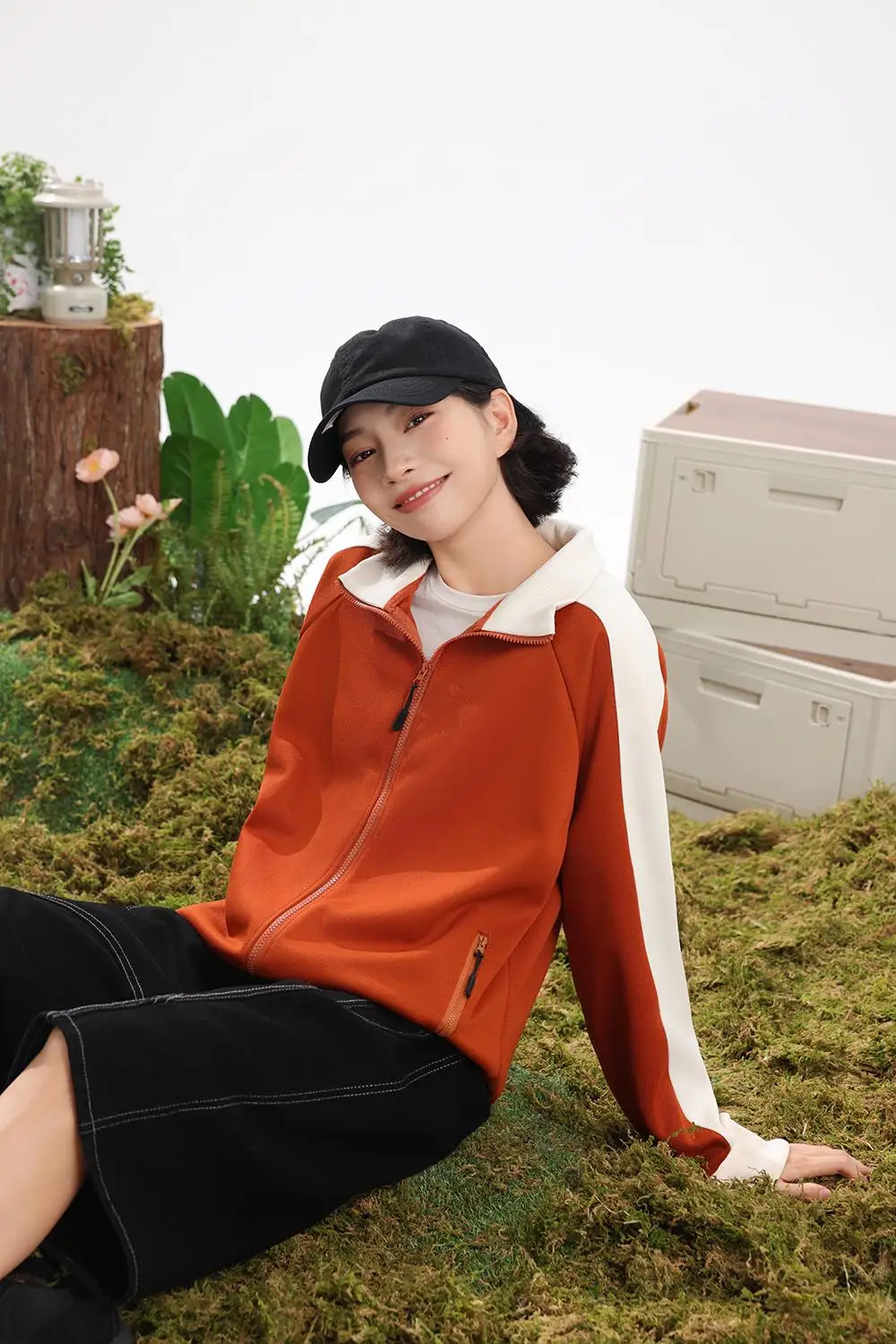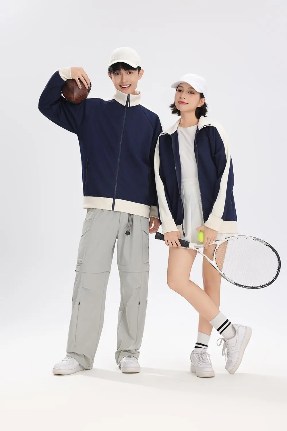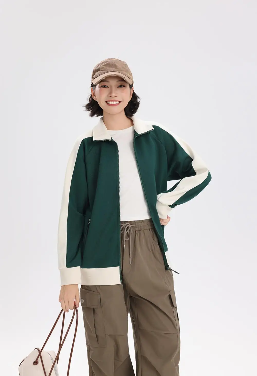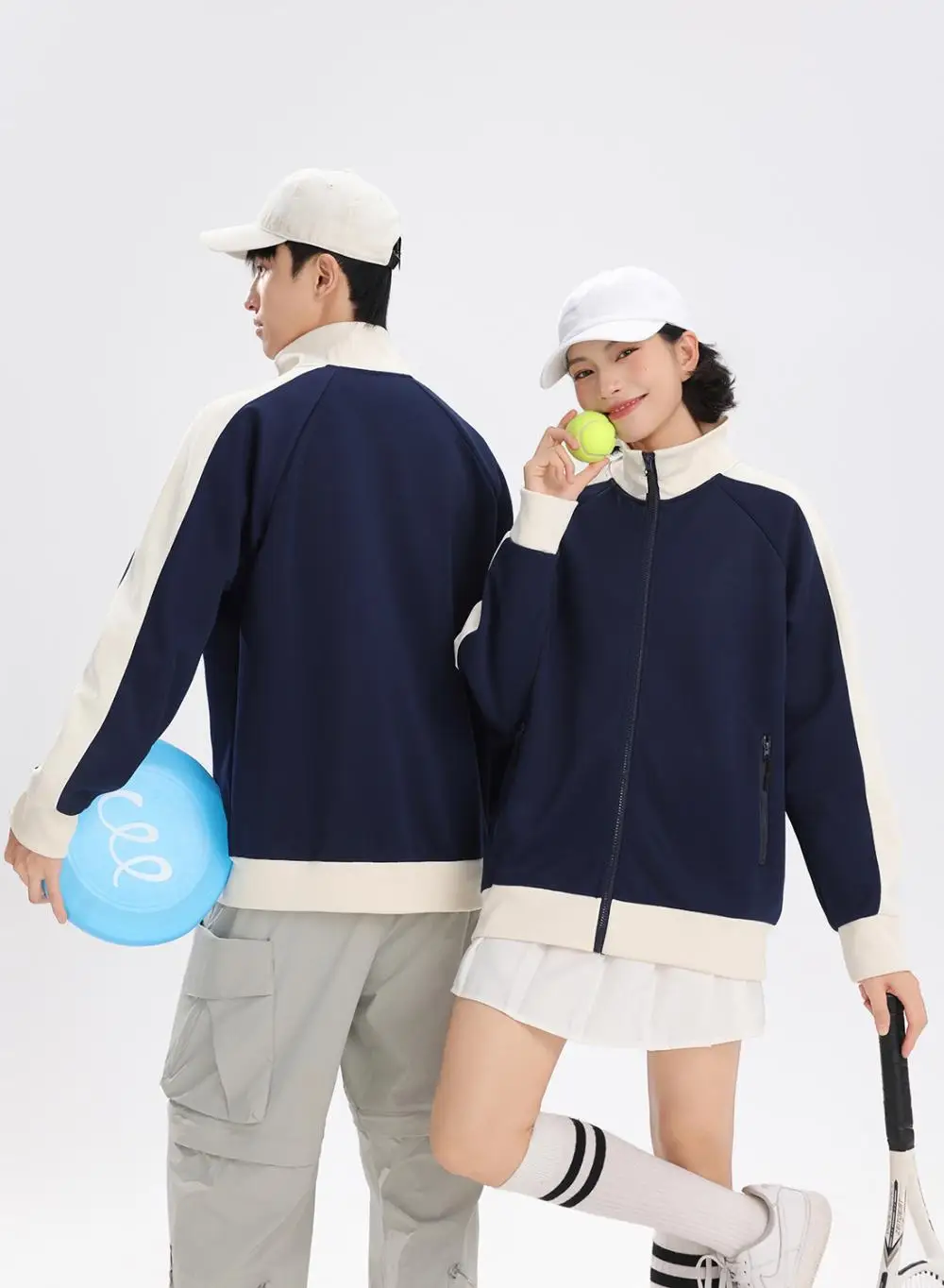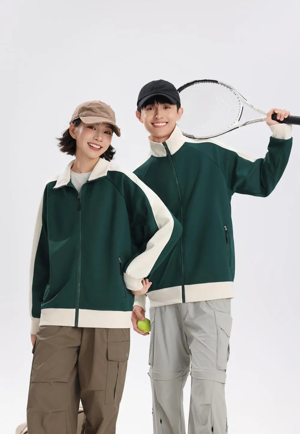 Long-sleeved Zipper Jacket, Color-blocked Warm Sweatshirt, Casual Baseball Jacket, Outdoor Wear, Customizable Logo