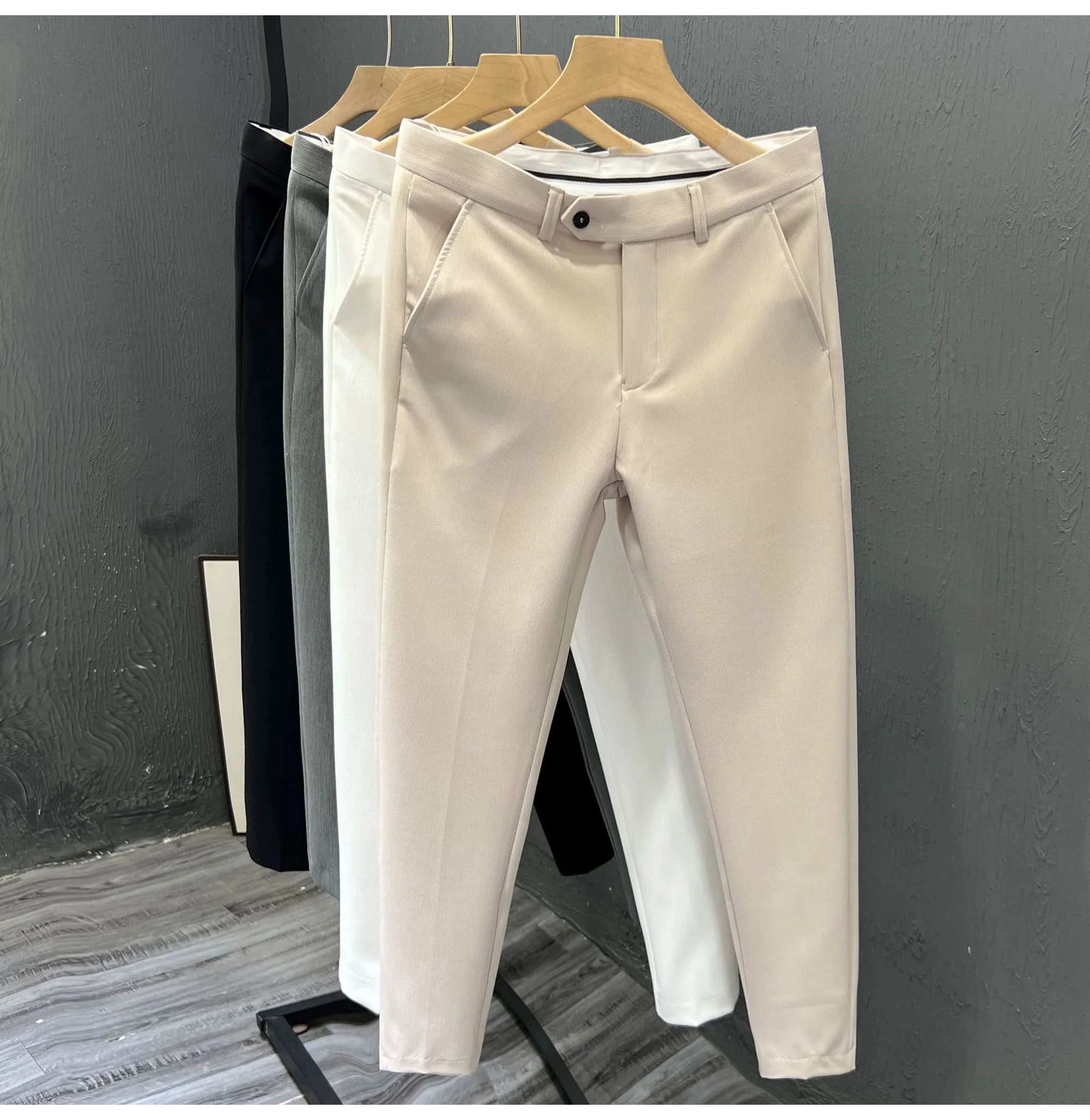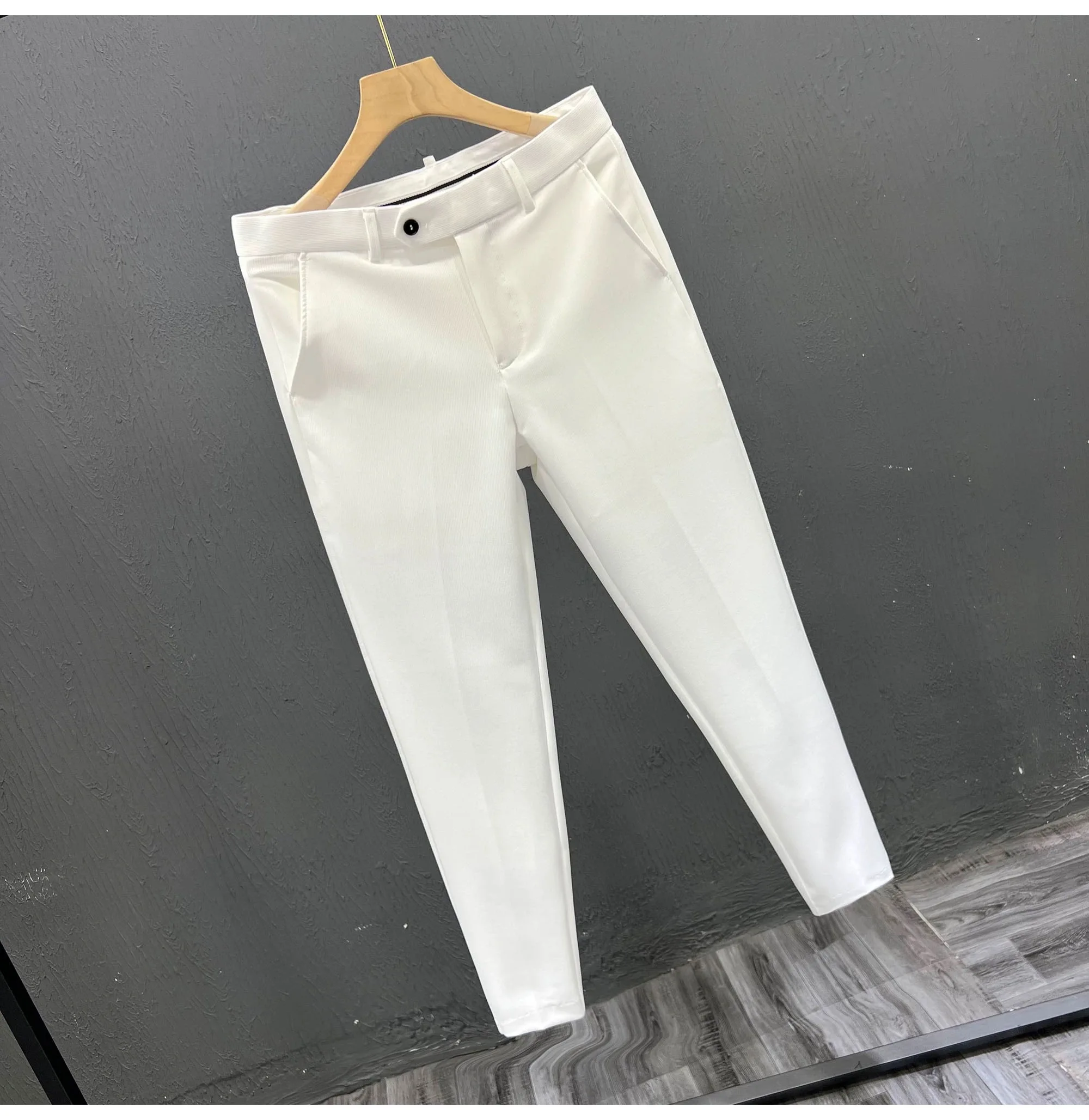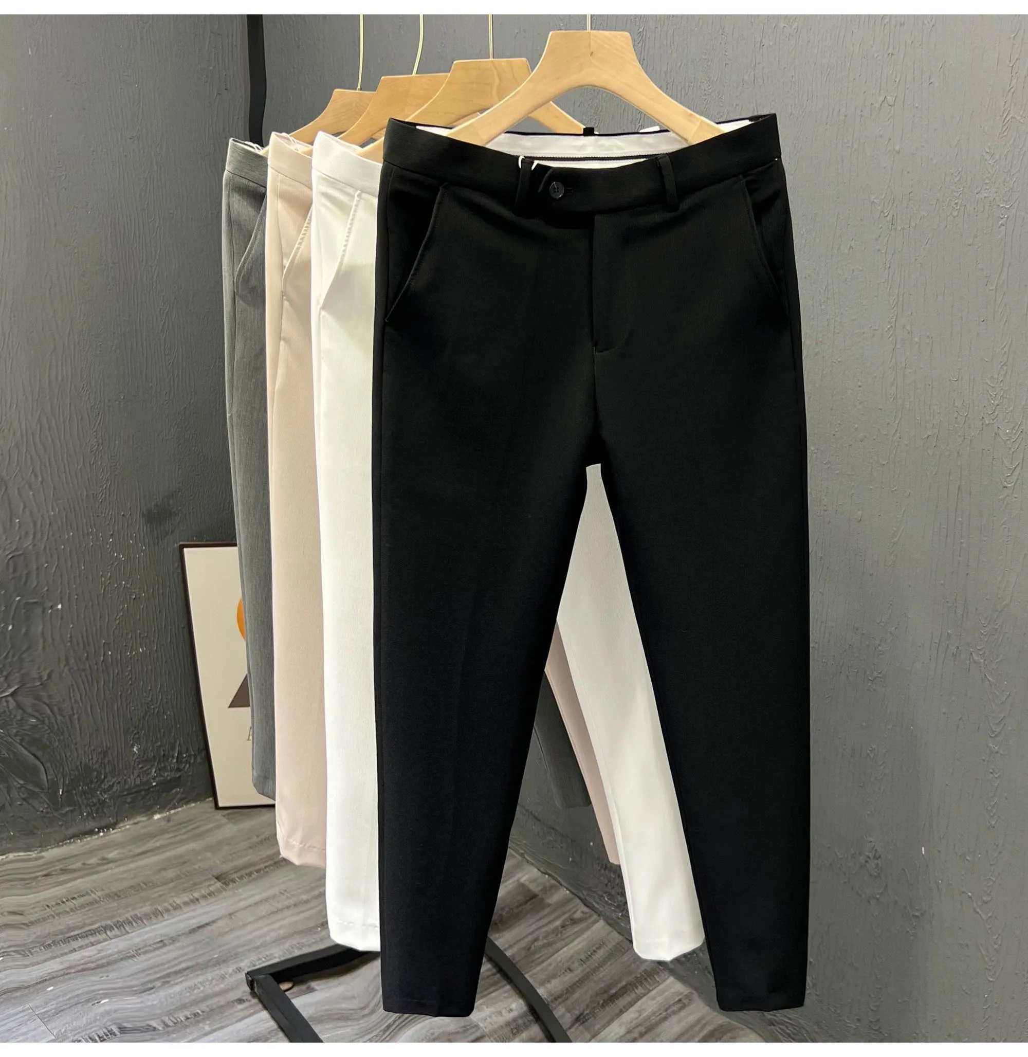 The pants feature a business gentleman style, perfect for formal occasions. Their sleek design and pure color make them versatile for any outfit.
